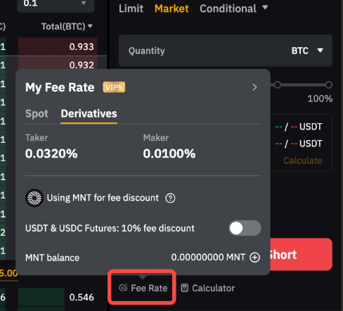 On the website, go to the trading page, find Fee Rate, and turn on the Using MNT for fee discount option.