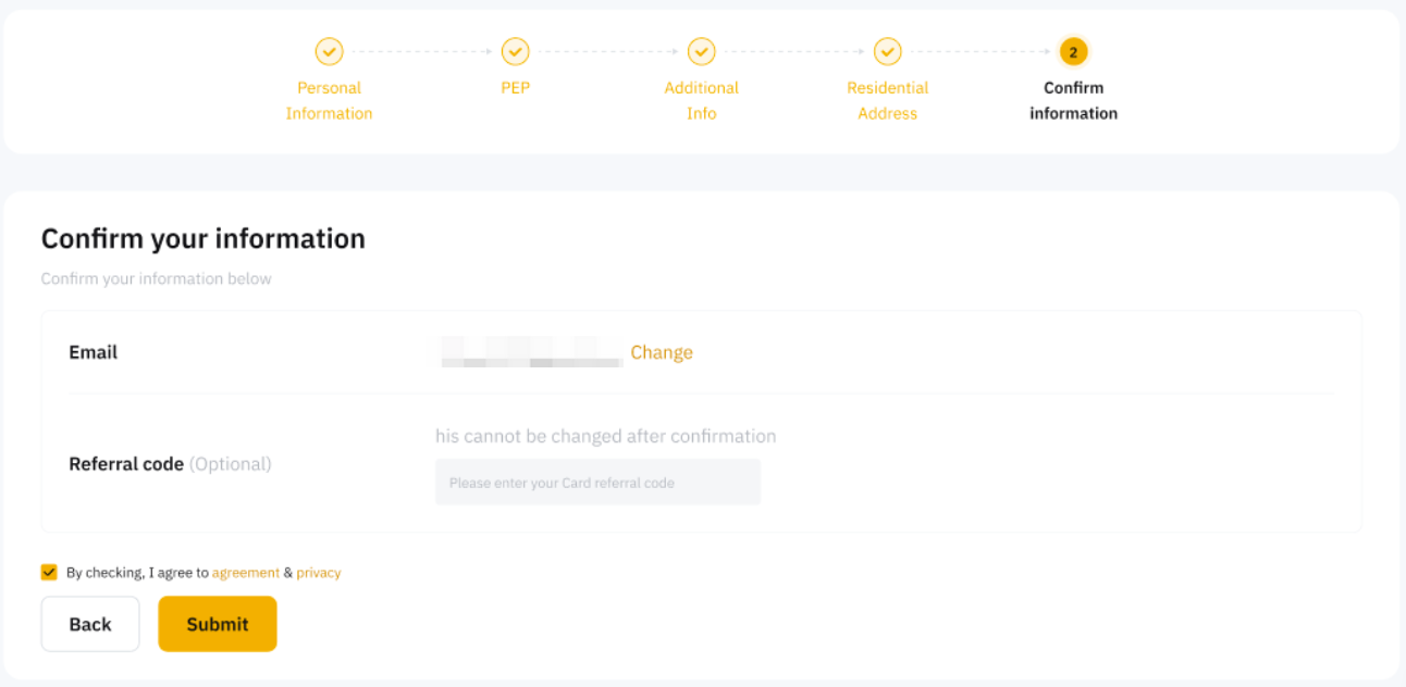 Note: Bybit Card is currently only available in limited countries. If your selected country of residence is not within the supported countries, we will register your interest now and inform you when the Bybit Card is coming to your country.
