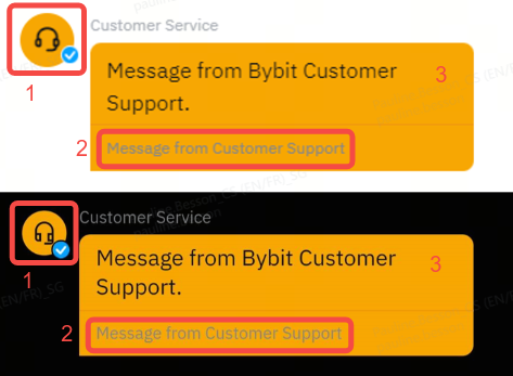 The profile picture of all Bybit Customer Support’s messages will be the headphone icon and the official blue tick will appear at the bottom right side. |