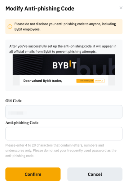 Always set up your unique anti-phishing code from our Account & Security page. This simple step increases account security and allows users to better identify official emails sent by Bybit.