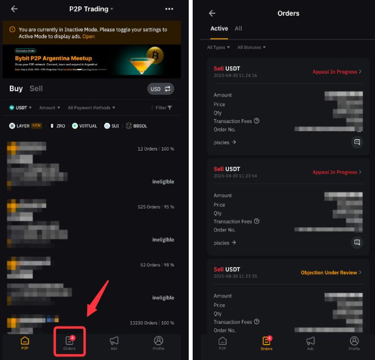 You can also view the Order History by going to Orders from the P2P Trading page.