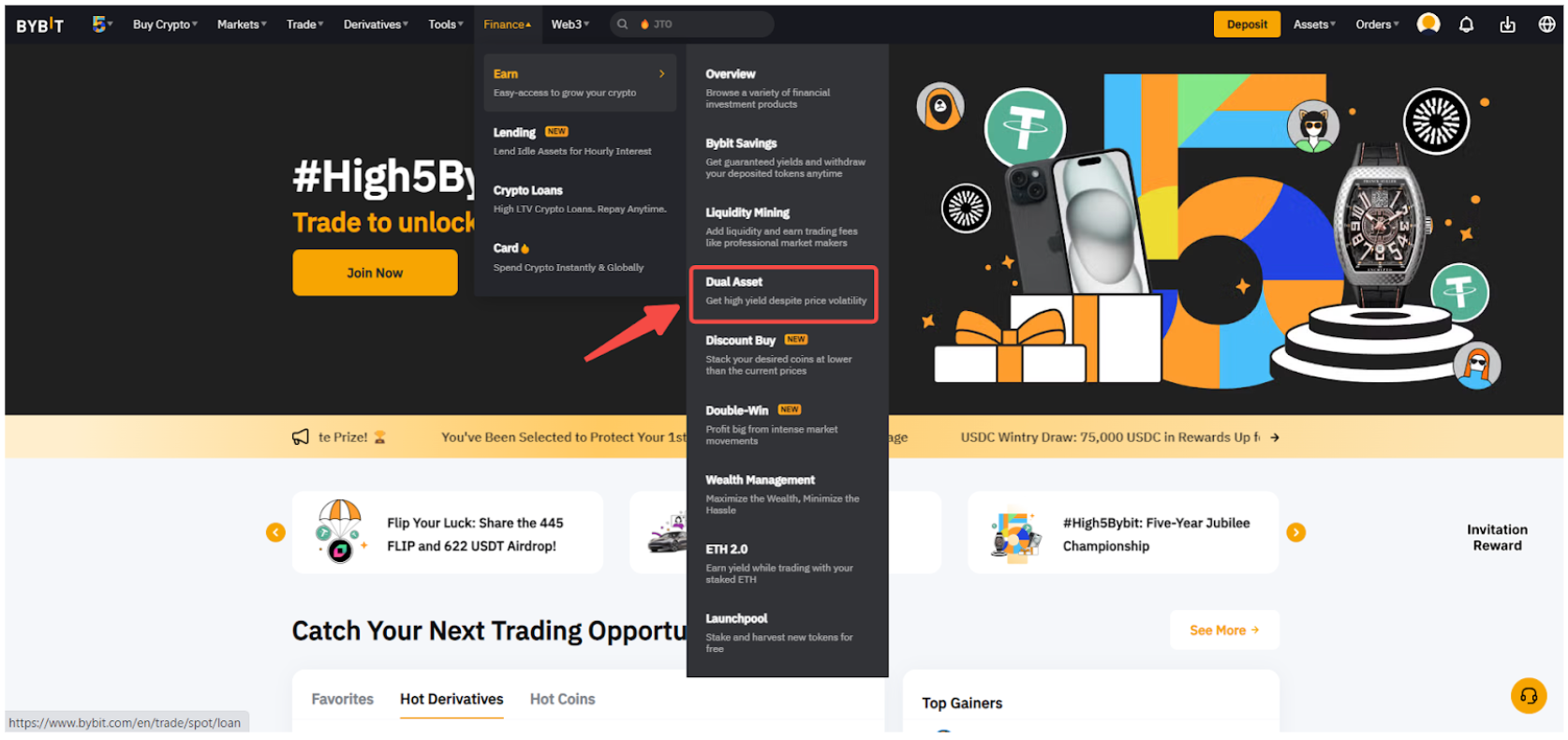 Step 1: Please click on Finance → Earn → Dual Asset in the navigation bar to enter the Dual Asset page.