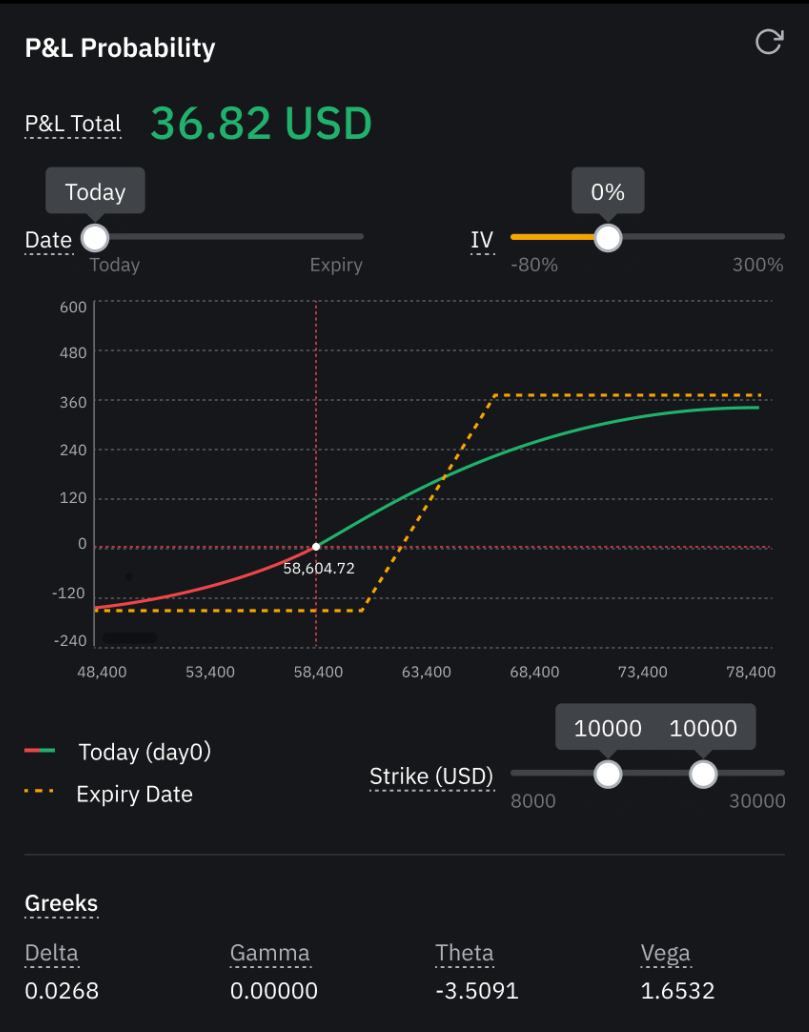 You'll find the P&L probability chart on the right. It gives you a visual representation of potential profits and risks before you submit your request, helping you make more informed decisions.