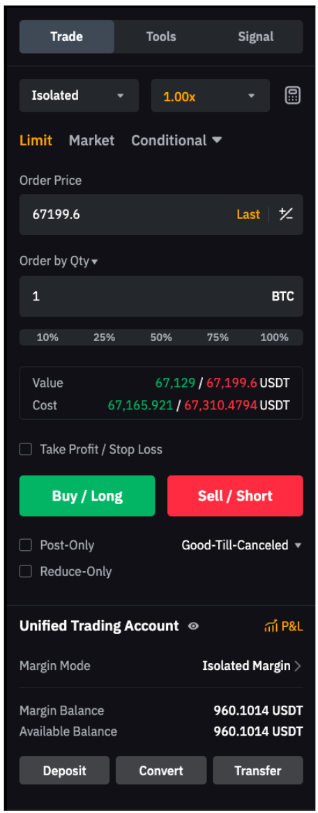 Note: For trading fee or funding fee deductions, the bonus will only be applied after your own capital has been used as position margin. In other words, while your margin always comes from your own capital first, any applicable trading fee, funding fee or trading loss will be automatically deducted from the bonus balance (if available). You do not need to manually select the bonus, as it will be applied automatically.