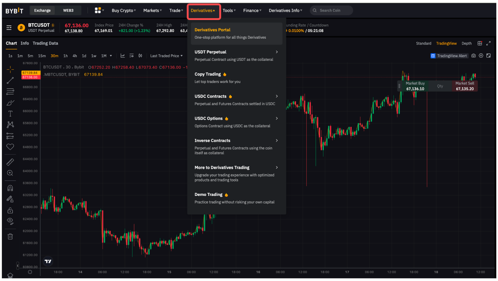 Step 1: Hover your cursor over the Derivatives tab and click on your desired contract type, which will bring you to the corresponding trading interface.